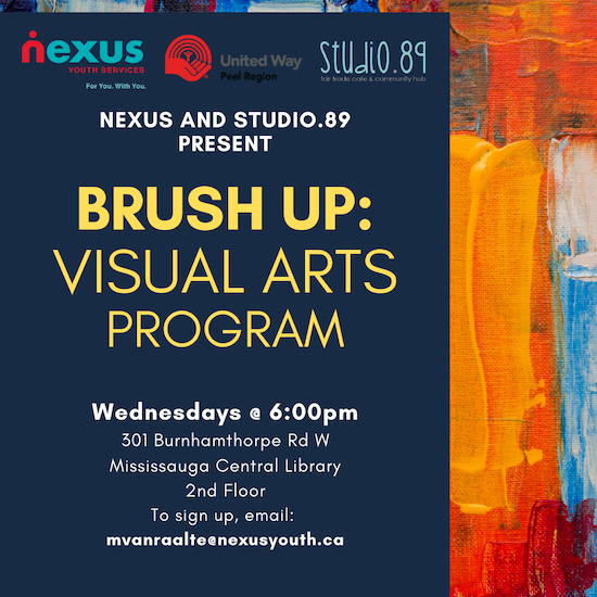 Program DetailsIn collaboration with Nexus Youth Services, ‘Brush Up! Visual Arts Program’ is an 8-week, art therapy-based program that aims to address important topics such as healthy expression, personal creativity and coping mechanisms.