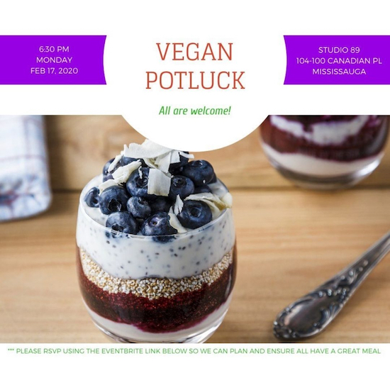 Program DetailsA monthly vegan potluck and get-together for the community (previously scheduled outside of Studio.89 operational hours).
